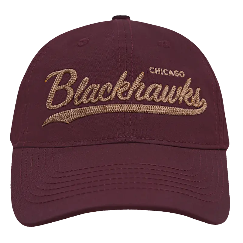 NHL CHICAGO BLACKHAWKS TAIL SWEEP STRAPBACK HAT (WINE)