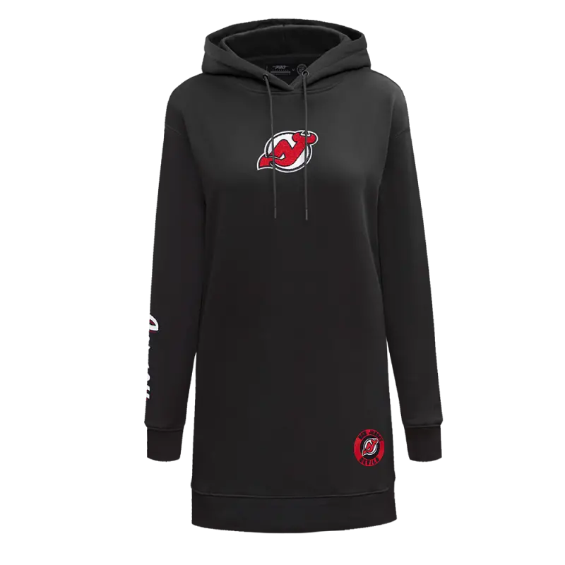NHL NEW JERSEY DEVILS CLASSIC WOMEN’S FLEECE HOODIE DRESS (BLACK)