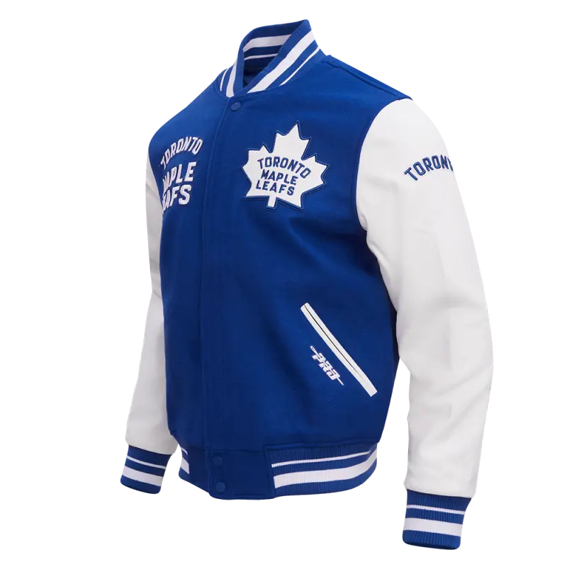 NHL TORONTO MAPLE LEAFS RETRO CLASSIC MEN’S RIB WOOL VARSITY JACKET (DODGER BLUE\/WHITE)