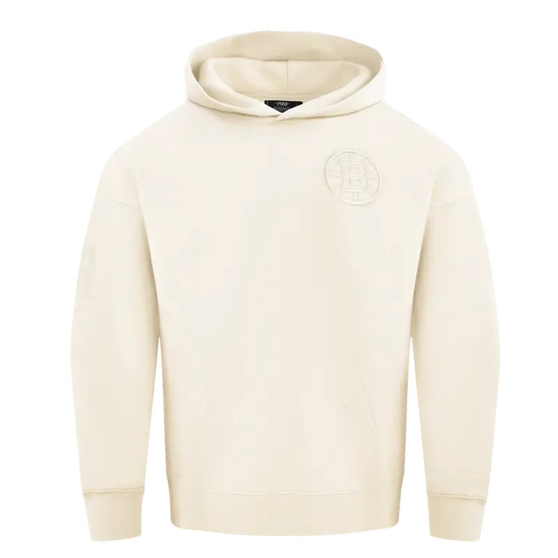 NHL BOSTON BRUINS NEUTRAL MEN’S DROP SHOULDER PULLOVER HOODIE (EGGSHELL)