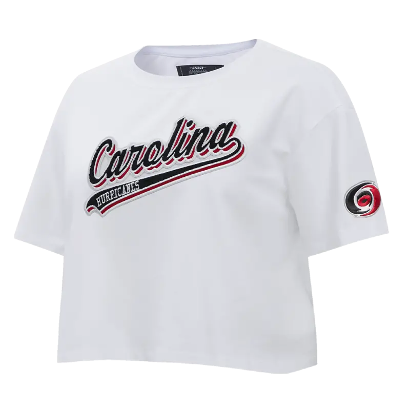 NHL CAROLINA HURRICANES SCRIPT TAIL WOMEN’S SJ BOXY TEE (WHITE)