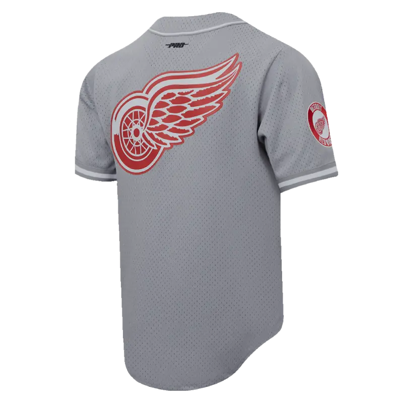 NHL DETROIT RED WINGS SCRIPT TAIL MEN’S MESH BUTTON DOWN SHIRT (GRAY)