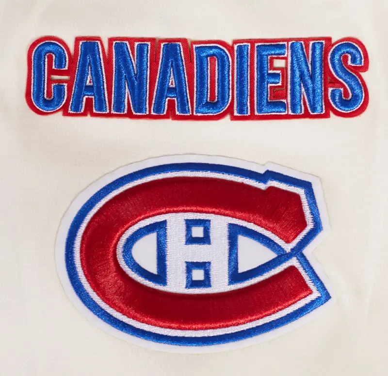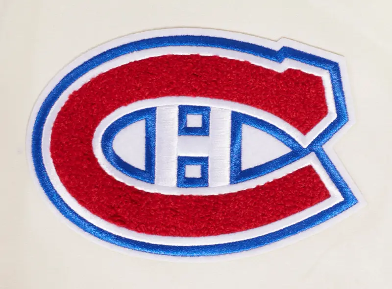 NHL MONTREAL CANADIENS CLASSIC CHENILLE MEN’S FULL ZIP PULLOVER HOODIE (EGGSHELL)