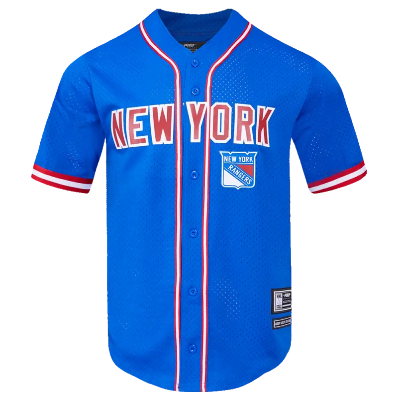 NHL NEW YORK RANGERS CLASSIC MEN’S MESH BUTTON DOWN JERSEY (ROYAL BLUE\/RED)