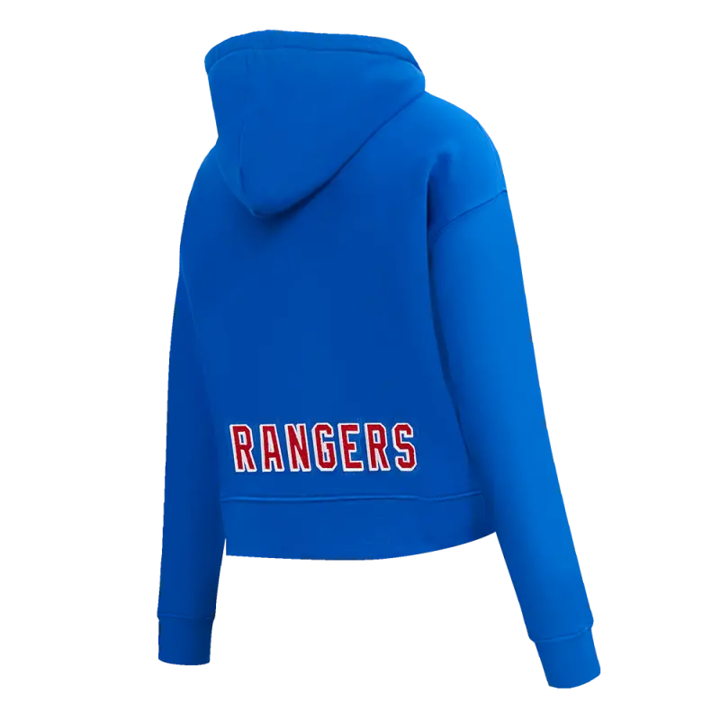 NHL NEW YORK RANGERS CLASSIC WOMEN’S FLEECE CROPPED PULLOVER HOODIE (ROYAL BLUE)